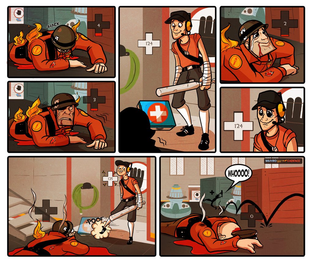 Dėl kažkokios priežasties dauguma Team Fortress 2 žaidėjų nesugeba suprasti, jog TF2 yra komandinis žaidimas ir tokiais dalykais kaip vaistinėlės arba šoviniai reikia dalintis.