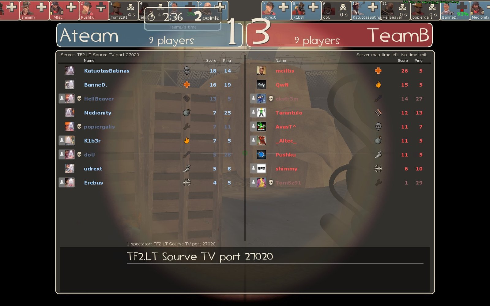 O kadangi susitarėm, kad A komanda laimėjo Badwater, o B komanda Badlands, dėl to ir žaidėm trečią žemėlapį Gravelpit ir visiškai sąžiningai ir užtikrintai laimėjo B komanda.
