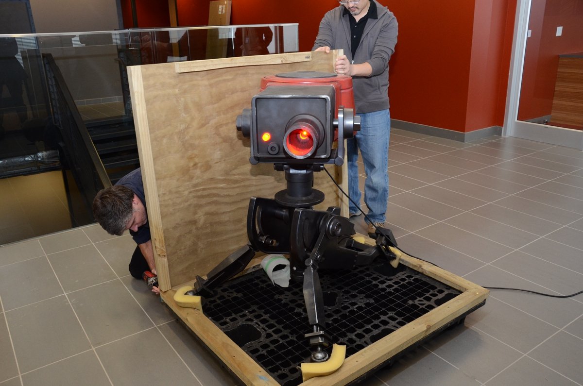 Valve blogas:  Prieš keletą mėnesių, mes turėjome galimybę apsilankyti Weta dirbtuvėse ir mus pritrenkė visi tie neįtikėtini dalykai, kuriuos jie gamina. Prisimine koks tuščias ir vienišas mūsų naujasis ofisas, nusprendėme jį truputi papildyti. Mes Weta meistrų užsiprašėme, jie už didelę sumą grynų pinigų sutiko. Perdavėme ypač slaptus „Sentry Gun“ brėžinius ir vyrai kibo į darbą. Per visą procesą Weta dirbtuvių meistrai mus erzino su gražiomis nuotraukomis ir video medžiaga.